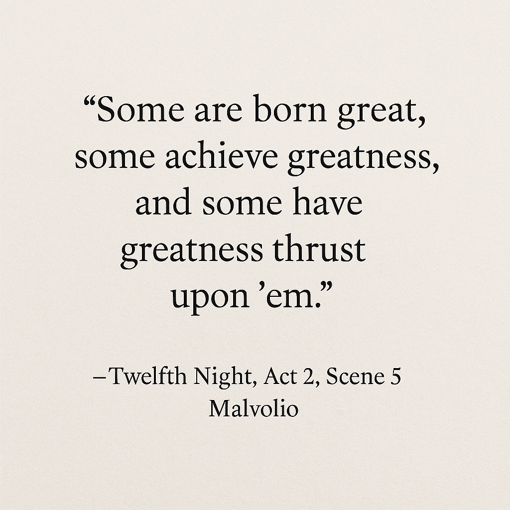 “Some are born great, some achieve greatness, and some have greatness thrust upon ’em.”